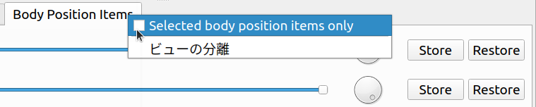 When you check “Selected body position item only” here, only selected BodyPosition items become targets of this view. If no BodyPosition items are selected when you check this, the view display should become empty, but select an appropriate item and confirm that it becomes the operation target of the view.