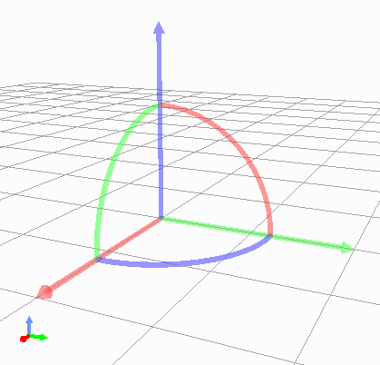 Here, the straight arrows are handles for translation, and the curves connecting them are handles for rotation. Each is highlighted when pointed to with the mouse pointer and can be moved by dragging while pressing the left mouse button.