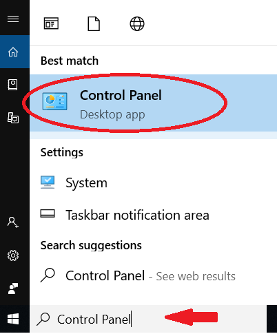 Enter Control Panel where “Type here to search” is displayed in the taskbar, and click on the displayed control panel to open it.