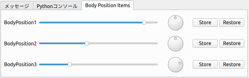 Finally, there are two buttons for Store operation to record the current position of the model and Restore operation to recall the recorded position to the model. These have the same functions as the “BodyPosition Bar” toolbar introduced in Custom Project Item Type Sample (S05), but differ in that they can be operated individually for each BodyPosition item.