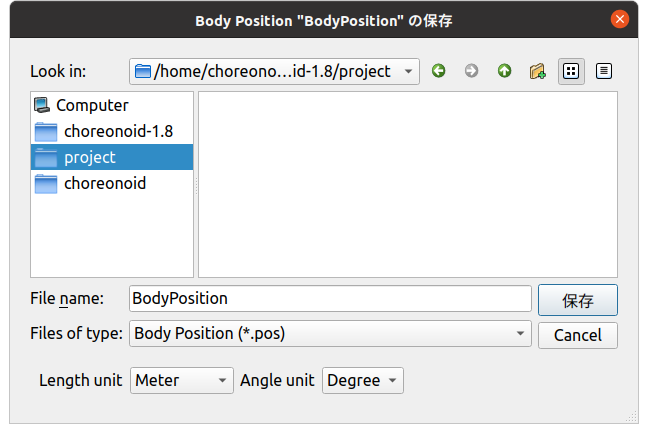 Next, let’s try saving a BodyPositionItem file. Select the item and execute “File” - “Save Selected Items As”, and the following save dialog will be displayed: