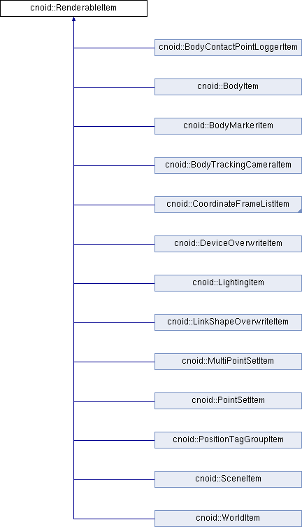 Implemented in cnoid::BodyItem, cnoid::DeviceOverwriteItem, cnoid::MultiPointSetItem, cnoid::CoordinateFrameListItem, cnoid::WorldItem, cnoid::BodyTrackingCameraItem, cnoid::PositionTagGroupItem, cnoid::LinkShapeOverwriteItem, cnoid::PointSetItem, cnoid::SceneItem, cnoid::LightingItem, cnoid::BodyMarkerItem, and cnoid::BodyContactPointLoggerItem.