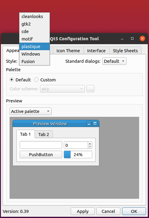 Ubuntuでは qt5-style-plugins というパッケージをインストールすることで、以下のスタイルも利用できるようになります。