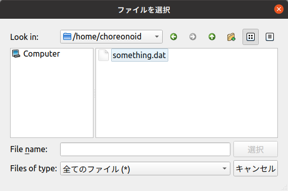 ダイアログでは現在設定されているファイルパスのディレクトリがデフォルトで開かれます。 そしてこのダイアログでファイルを選択すると、それがプロパティの編集結果として入力されます。 このようにファイルダイアログを使用することで、ユーザは効率的にファイルの選択を行うことができます。